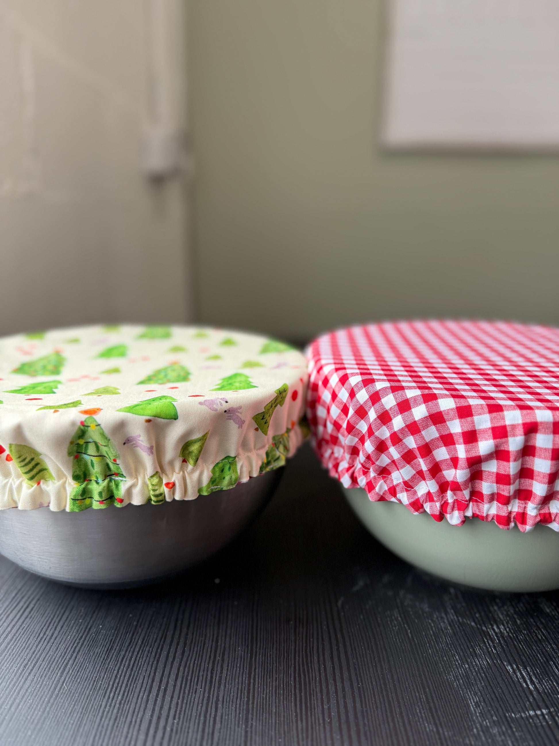 Handmade from 100% cotton, this reusable cover fits most medium–large mixing bowls. Ideal for rising dough, covering leftovers, and keeping holiday prep simple — a sweet, practical gift for any baker.